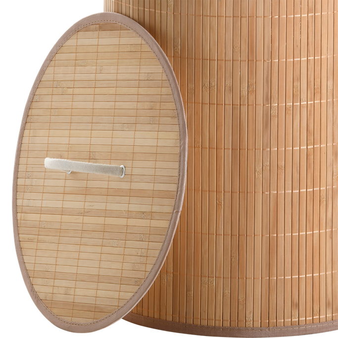 Coastal Farmhouse Charm. Take your laundry routine to the next level with nature's beauty that Bambi Laundry Basket provides. Create a peaceful atmosphere that will soothe your soul with organic and muted tones. It adds easy coastal farmhouse charm to your laundry room or bathroom while concealing unclean clothes. The spacious layout and the carry handles allow you to tuck away large loads of laundry and keep the space neat and tidy. It's made of polyester wrapped in bamboo in a natural wheat finish to give it a breezy appearance. Create a pleasing contrast with its warm tones.