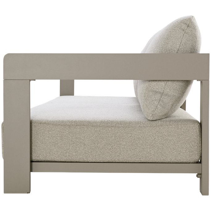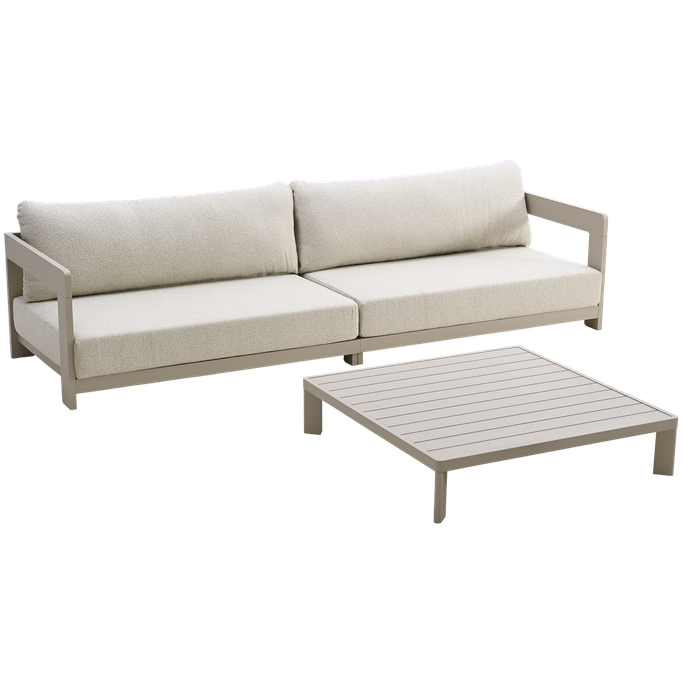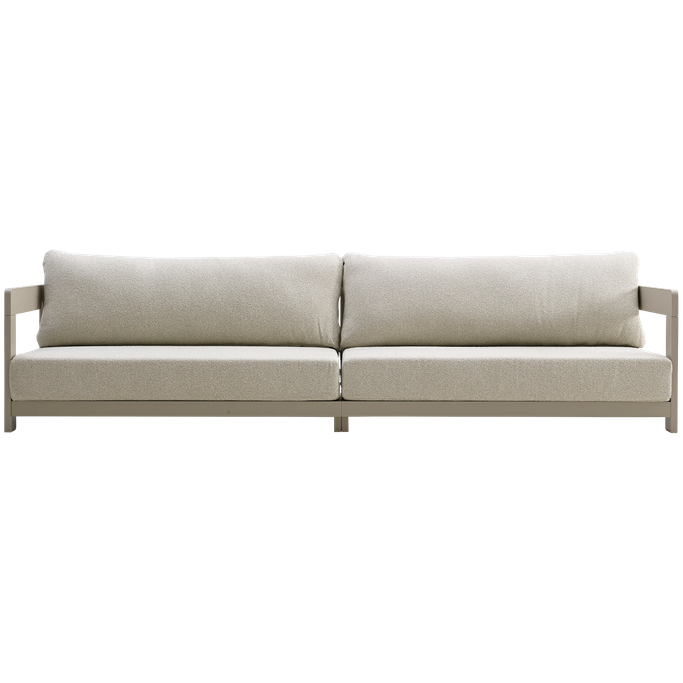 Experience true comfort under a starry sky with the Como Four-Seater Sofa. Designed with a low-profile rectangular frame, it offers a spacious seating area with a straight back for optimal support, cushions, and elegant arms. It is made from a sturdy aluminum frame, wrapped in soft-touch fabric in a captivating color, bringing a refined sense of elegance and comfort to your outdoor space. Enjoy wonderful moments of relaxation in the open air.