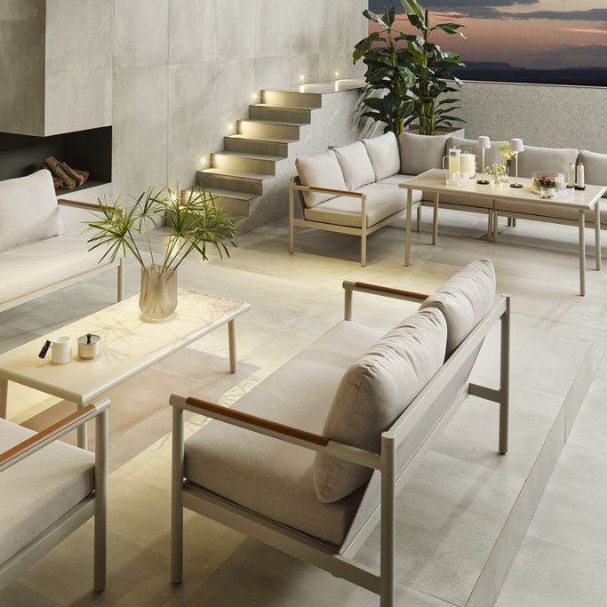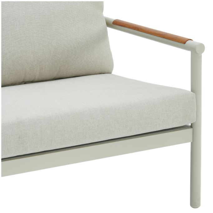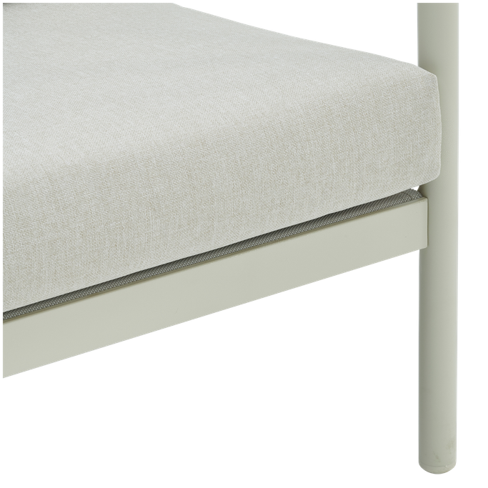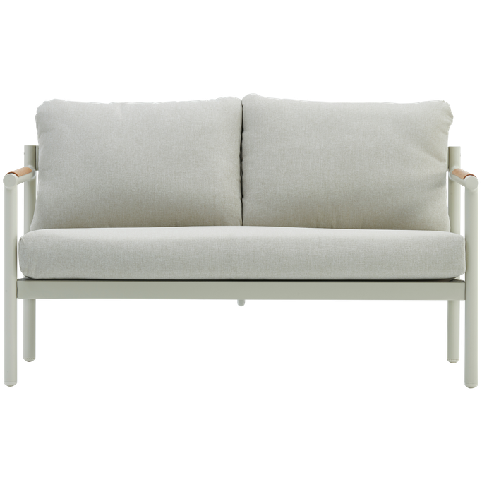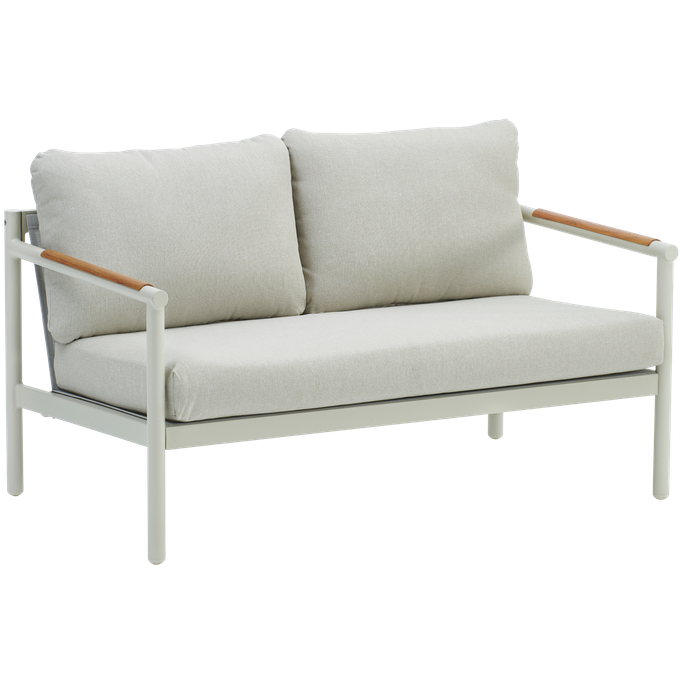 Cherish your precious moments and warm conversations with the Minimalist 2-Seat Sofa. Designed with a sleek frame and clean lines, it features two spacious seats with supportive back cushions and elegantly detailed armrests. It is made from aluminum and fabric in beige and white tones. Transform your outdoor space into a haven of memories.