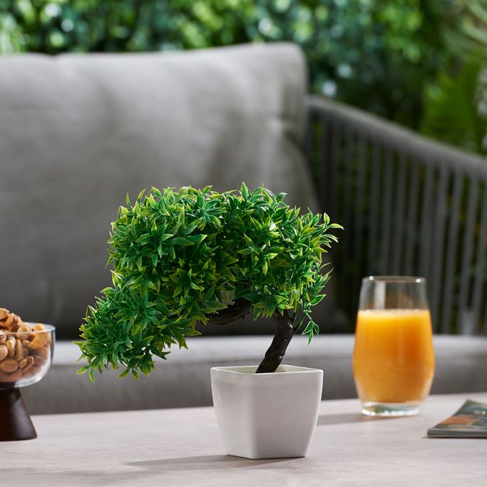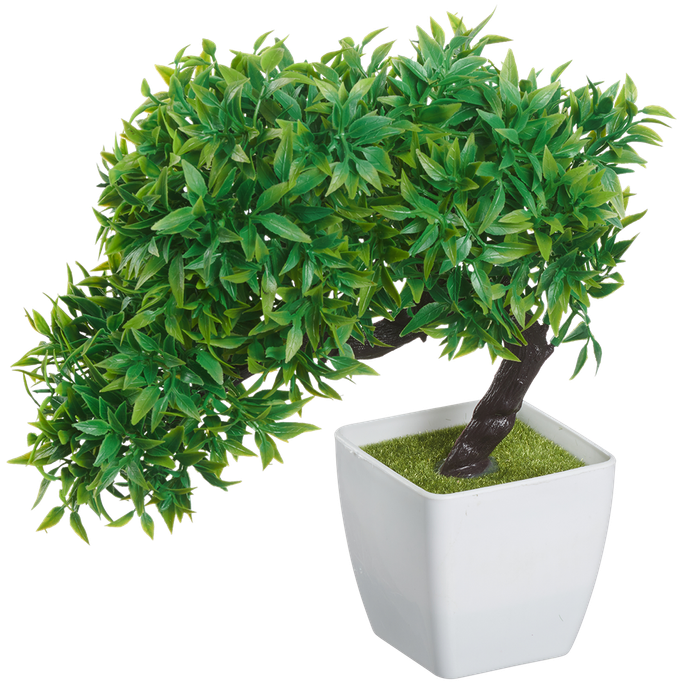 Nature on Your Table. Reflect nature on your table as if it were an artistic painting with Bonsai Plant. Designed in the distinctive shape and color of a bonsai tree. Crafted from plastic in white and green hues.