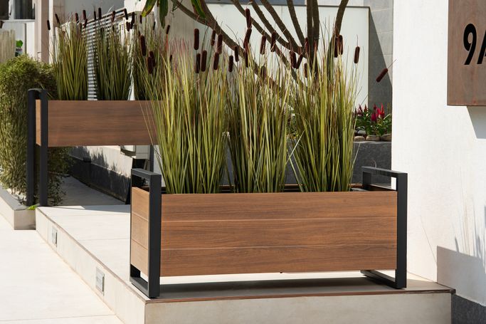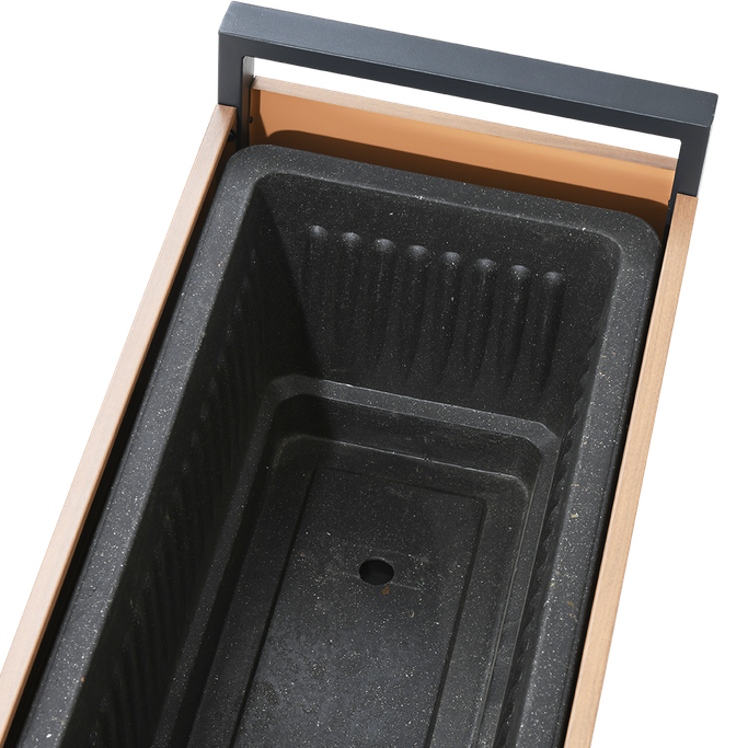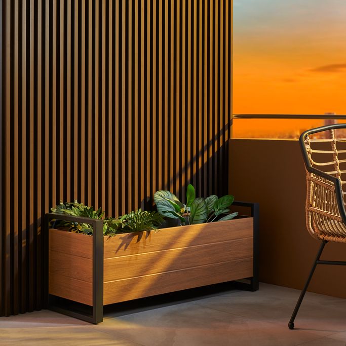 Secret Garden. Transform your home into an oasis of beauty and serenity with the Spice Wide Planter. Make your gardens lush with tall trees and enchanting colorful flowers in every direction, bringing the place to life. Designed in a rectangular in shape and deep enough to accommodate your flowers as they bloom, with sturdy legs for durability. It is made from brown-colored steel and plastic, it shines alongside your plants. Reflect the colors of nature in the corners of your home in your secret garden.