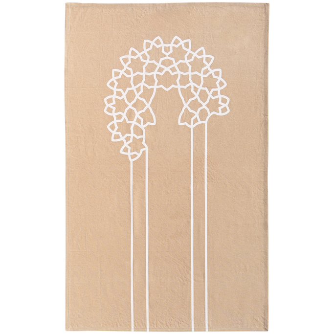 Goodness lies in the details of life. Experience moments of faith and tranquility everyday with the Islamic prayer. Designed elegantly and adorned with gentle motifs of Islamic patterns. It is made from beige-colored polyester with touches of white.