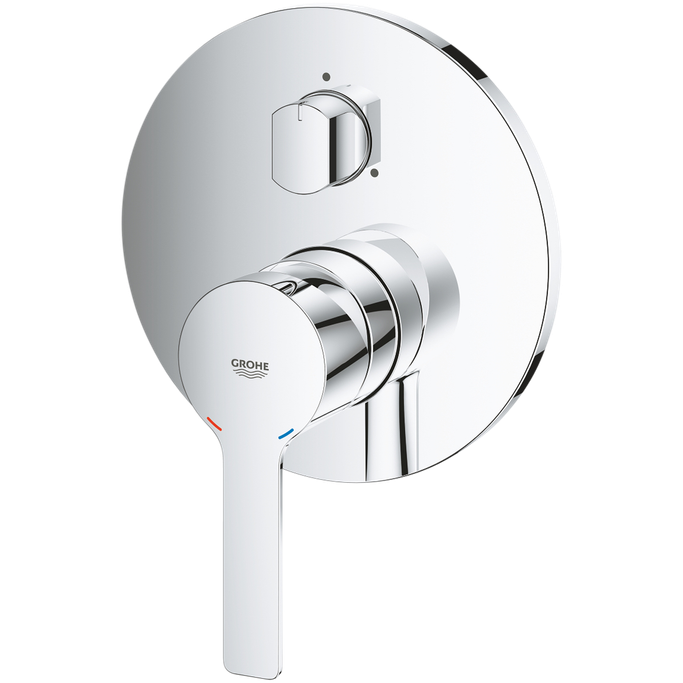A round, slim wall plate and streamlined lever give you seamless switching or combination between overhead shower, hand shower, or bath spout. GROHE technology ensures reliable, effortless use every time.