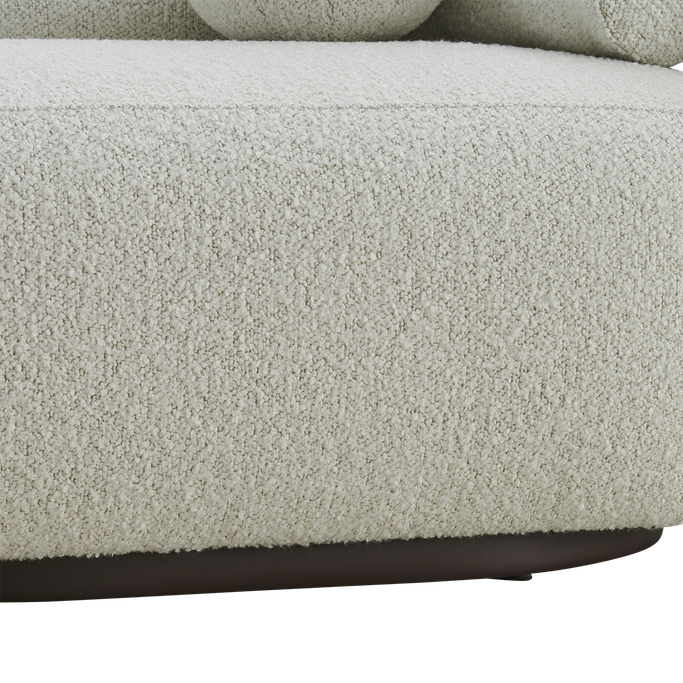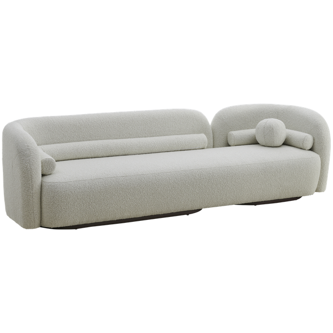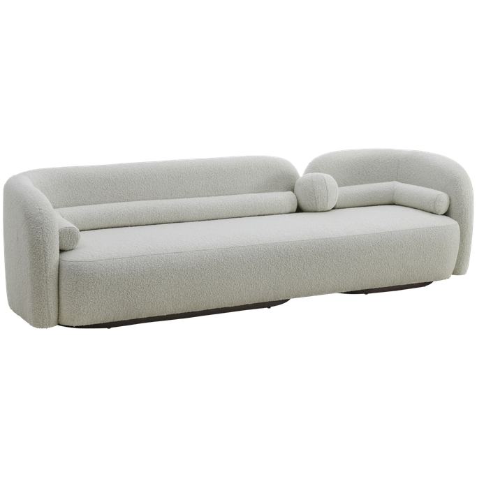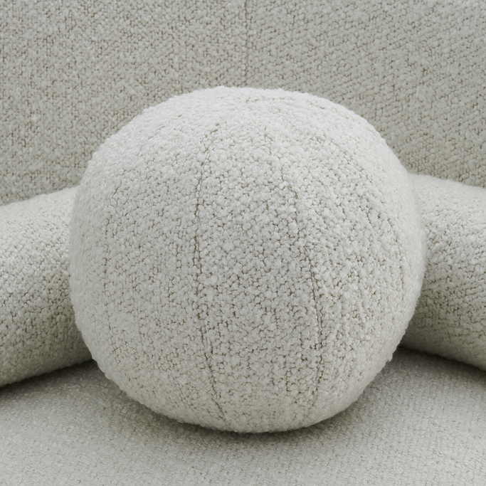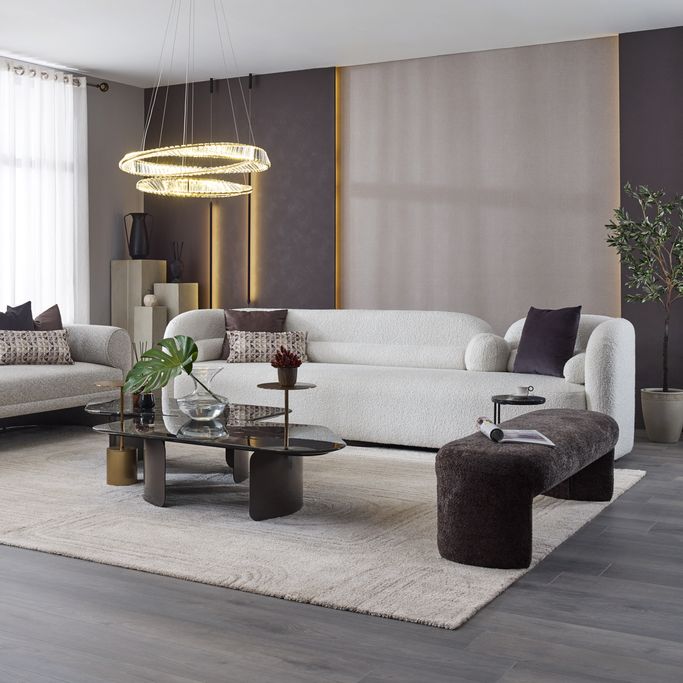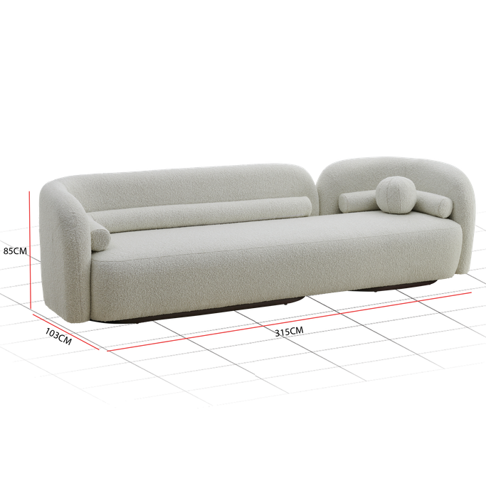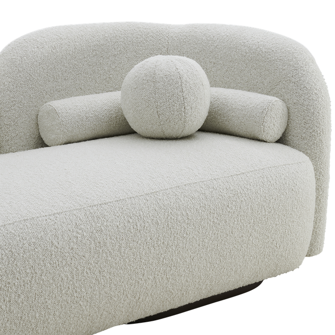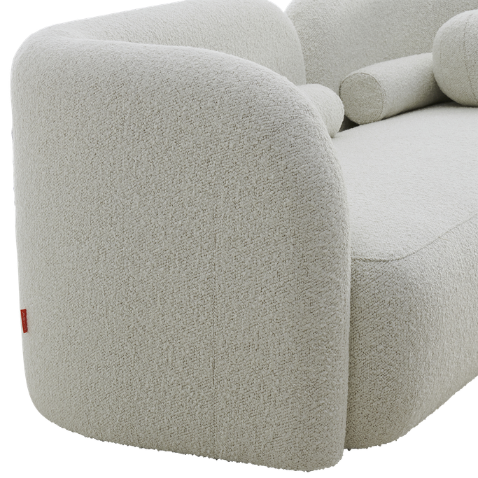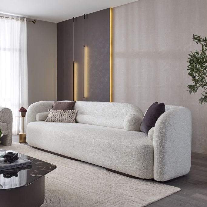 Transform your space into a haven of comfort and beauty with the Pearla Sofa. Designed with harmonious geometry, its elegant curves integrate seamlessly with straight lines to create an attractive design. The backrests provide ideal support, while the rounded arms add a touch of softness. Made from a sturdy wooden frame and covered in soft white fabric to offer a sense of a serenity to any room.