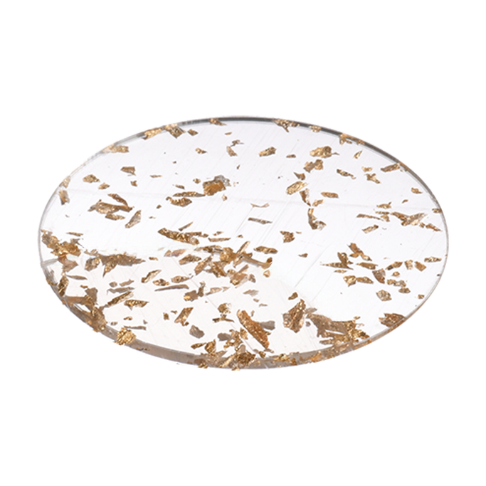 Among the Shimmering Ambiance. Your cup will shine brightly with Hayley Coaster Set. Your space will be glammed up to feel radiant bliss from every piece. The pattern exhibits a luscious beauty of golden hues that captivates all who view it. Designed to protect your table from heat and decorate your cups. It is made of clear acrylic with golden color to make your home glisten. Enjoy a drink amid opulence.