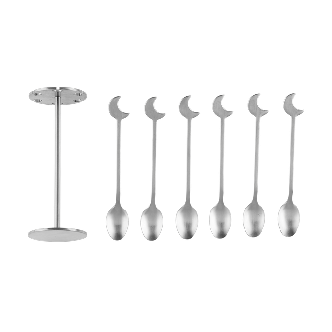 Smooth Curves. Let the graceful Lamis Teaspoon Set with Holder elevate your tea moment. Each table setting will shine brightly with elegance and style. Crafted with care and precision, each teaspoon in this set is a work of art. It is made of stainless steel in silver color. Feel the smooth curves of the teaspoon in your hand.