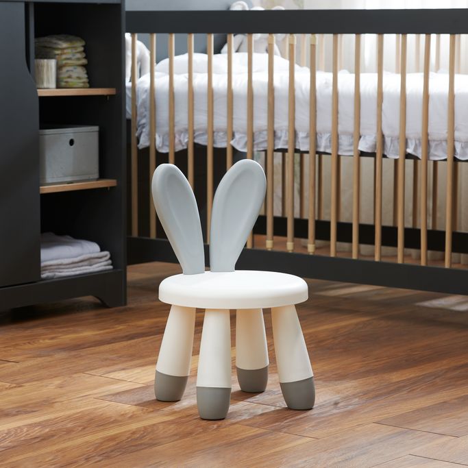 Children’s World. Create a world of wonders for your child with the stunning Rabbit Chair. The funky elements will give an atmosphere your kids will love and have fun in. Designed with rabbit-inspired character to catch the little one's eyes. It's perfect for a drawing corner, a study zone, or a small snack table. It is made of grey and white polypropylene to fit ideally any room's décor and blend in beautifully. Give them the room of their dreams.