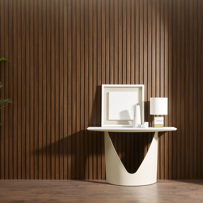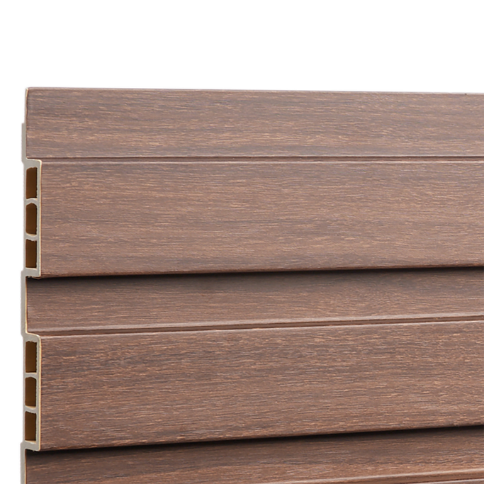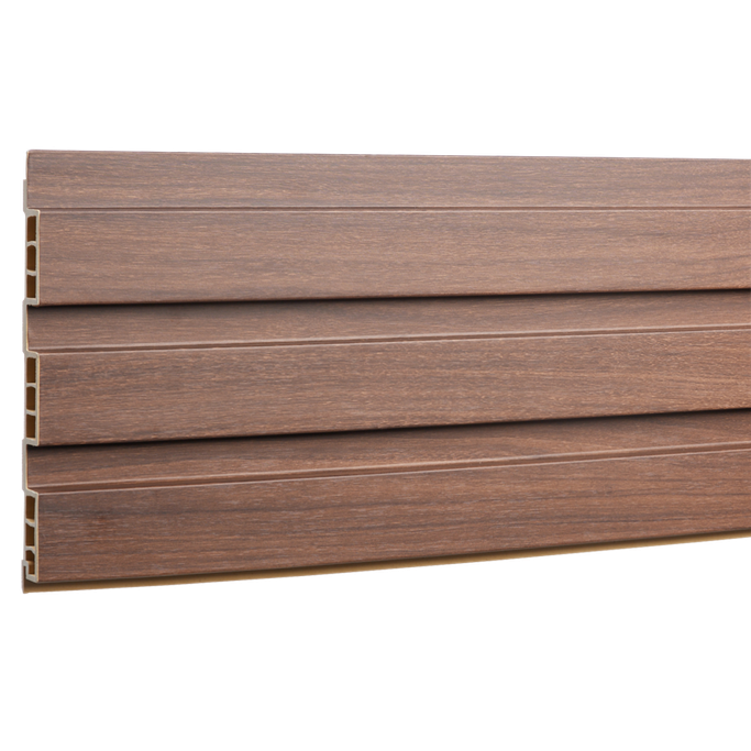 Create a Striking Design in Your Space with Bois Wall Cladding. It is made from a blend of wood powder and recycled plastic, in a dark brown color with harmonious vertical lines. Make your walls a work of art that gives your design a modern character.