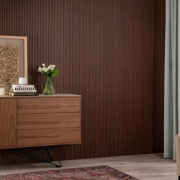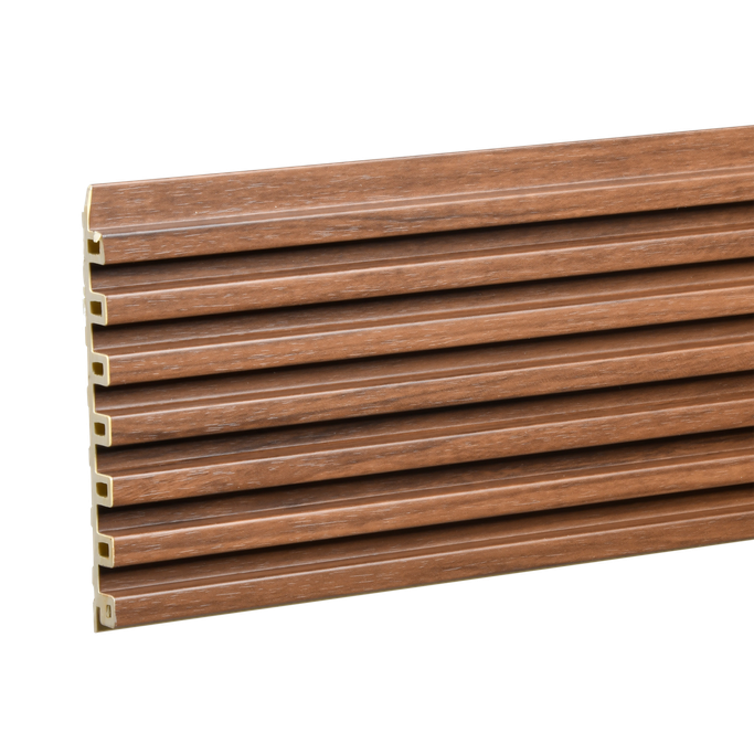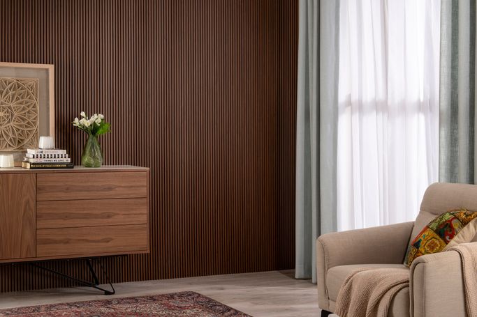 Express your personality with elegance with Wade Wall Cladding. Made from a blend of wood powder and recycled plastic, in brown with harmonious vertical lines. Make your walls come alive in a blend of authenticity and beauty.
