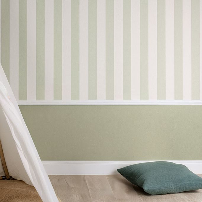 Enjoy elegance and calm with Atmosphere Wallpaper. It is made from vinyl plastic and non-woven fabric in a Light Green color, featuring vertical stripes that add a harmonious aesthetic touch. Give your walls a modern look that blends seamlessly with decor elements.